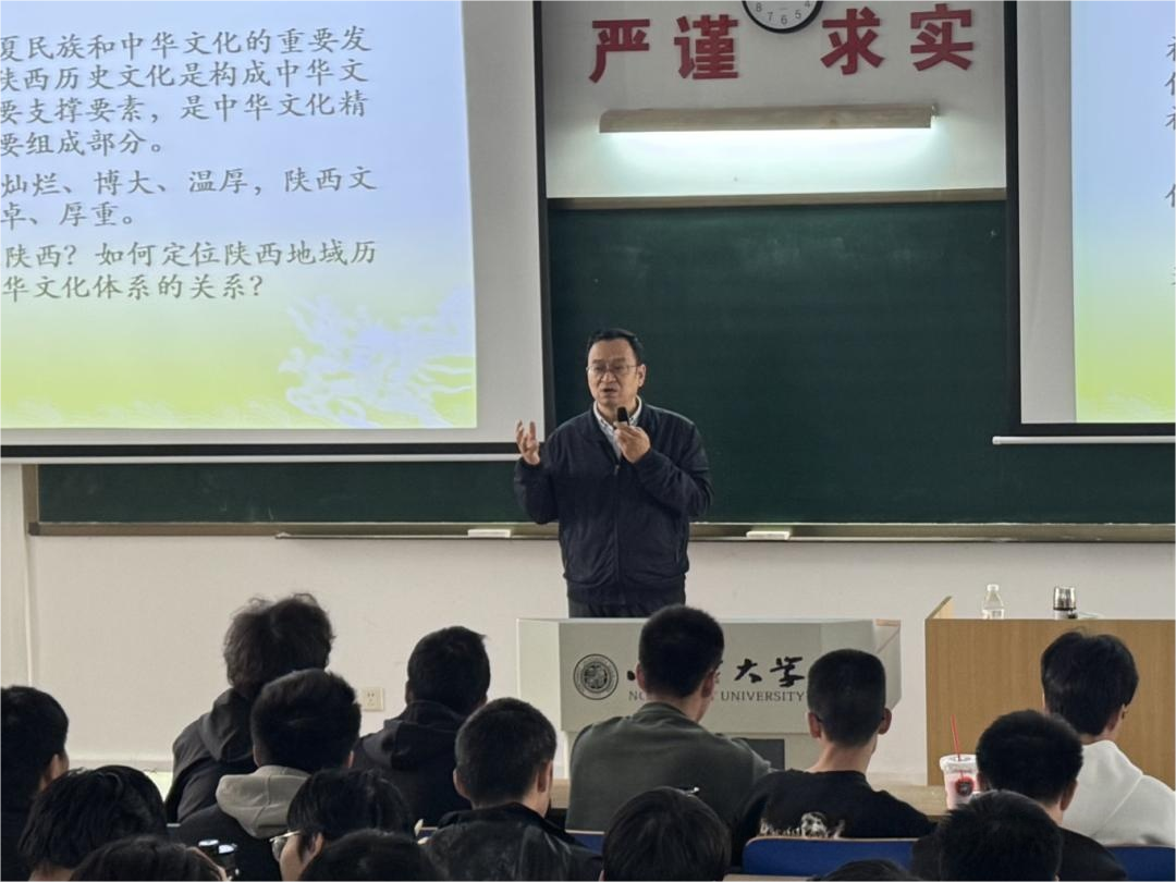 课程伊始,赵万峰老师阐述了中华民族地大物博、多元一体,人民勤劳勇敢、热爱和平又富于反抗精神的特质。他系统梳理了陕西对中华文化体系的历史贡献,指出历史文化、红色文化、民俗文化、宗教文化、生态文化、科教文化等交相辉映,既是璀璨的地域文化,更集中体现了中华文明的主体性、多元性与盛世气象。