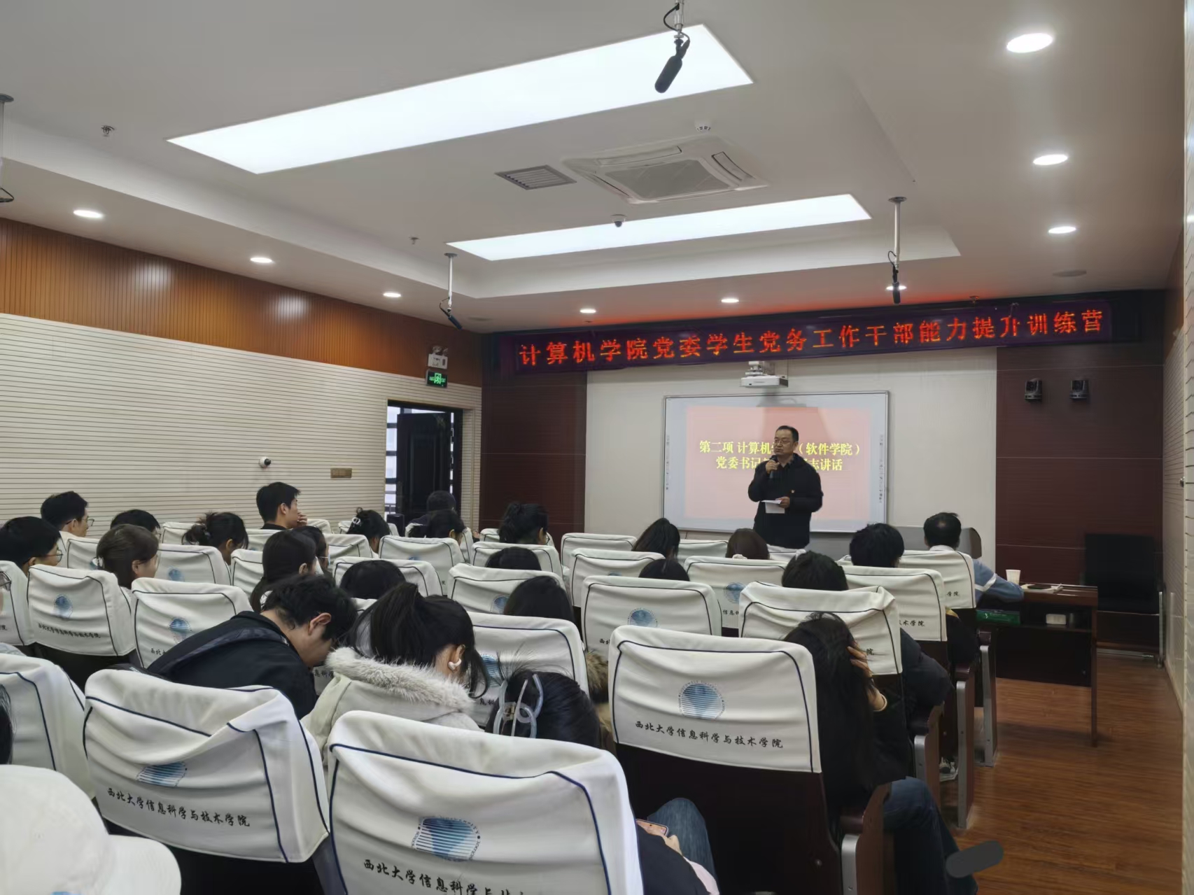 为进一步加强学生党务工作队伍建设,提升学生党务干部的政治素养和业务能力,11月28日,计算机学院(软件学院)在院楼631报告厅举办“学生党务工作干部能力提升训练营”。学院党委书记赵万峰、校党委组织部副部长兼党校副校长杨红涛、学院党委副书记兼党委分党校校长贾文涛参加活动,学院党委分党校学生干部及各党支部学生委员参加培训,活动由贾文涛主持。