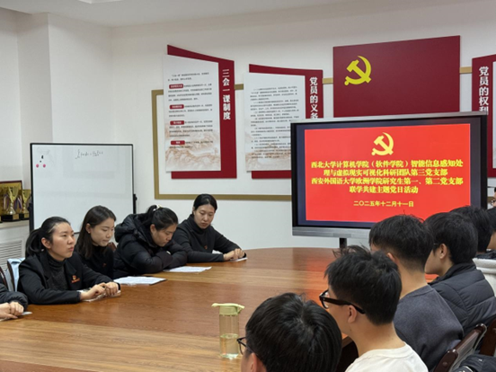 为深化高校党支部共建,推动文化数字化与文旅外宣跨学科融合发展,12月11日,西北大学计算机学院(软件学院)智能信息感知处理与虚拟现实可视化科研团队第三党支部与西安外国语大学欧洲学院研究生第一、第二党支部开展联学共建主题党日活动,活动由西北大学兼职辅导员、智能信息感知处理与虚拟现实可视化科研团队第三党支部副书记秦钰林主持。