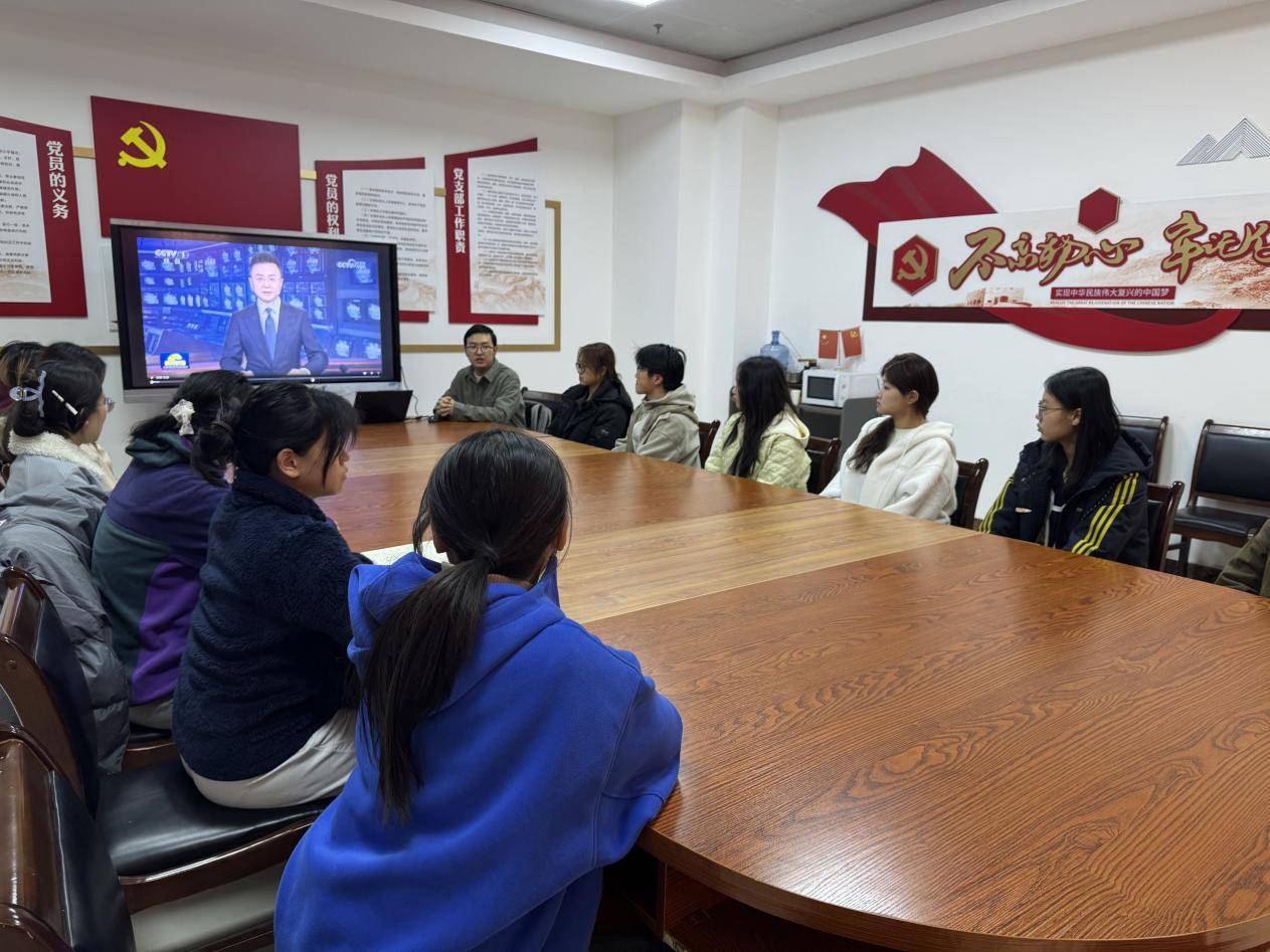 首先,西安外国语大学兼职辅导员、旅游学院研究生会主席张珂欣组织观看了新闻联播报道,领学了习近平总书记的贺信。