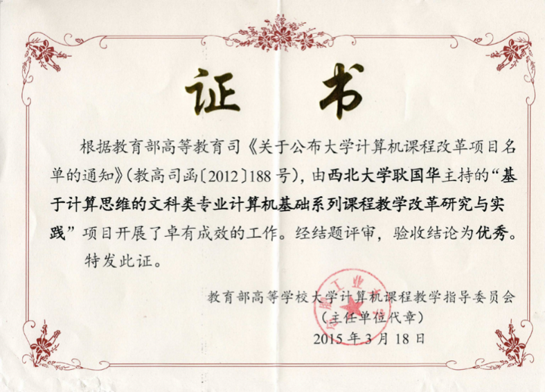 “以计算思维为导向的《大学计算机》课程群教学改革与实践”获陕西省教学成果一等奖