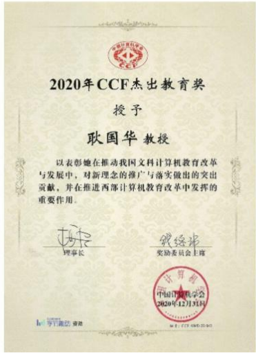 耿国华获得CCF杰出教育奖