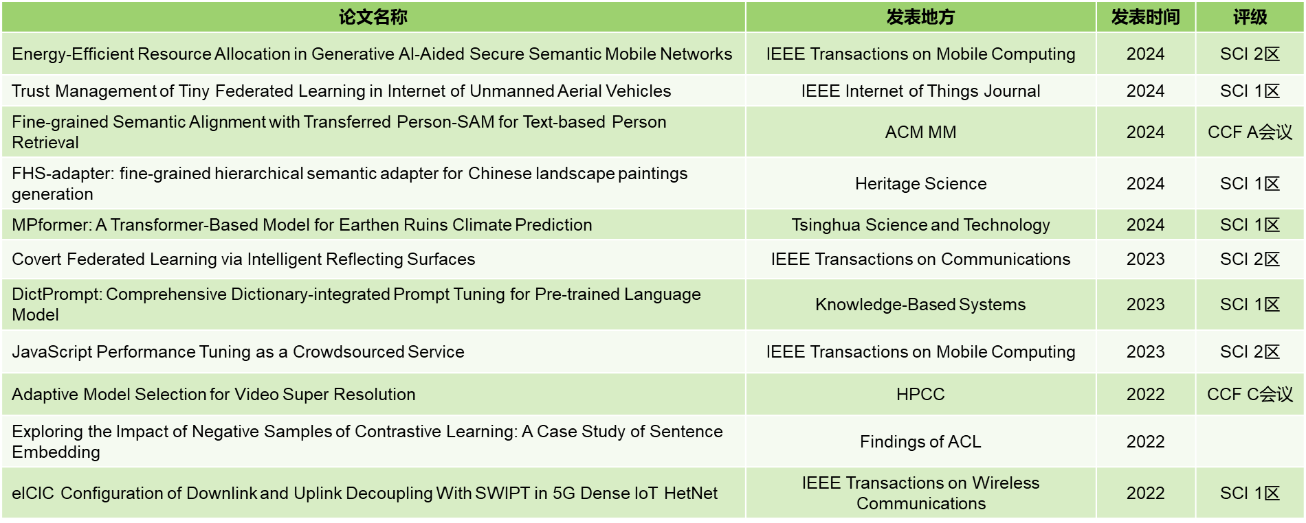 主要研究方向包括自然语言处理中的文本表示学习、多模态表示学习与应用,以及生成式大型语言模型和应用。相关研究成果发表于Findings of ACL、KBS、ESWA、PR、NN等国际会议与期刊,授权国家发明专利7项。科研方面,参与国家重点研发计划子课题2项、国家自然科学基金面上项目3项,主持国家自然科学基金青年项目1项。教学方面,是计算机学院《人工智能》教学团队骨干成员,承担学院本科课程《人工智能》的授课任务,获得校级“人工智能+”教改项目1项。