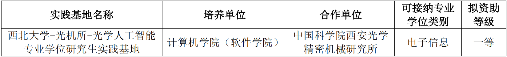 西北大学专业学位研究生示范性实践基地建设项目拟立项项目名单
