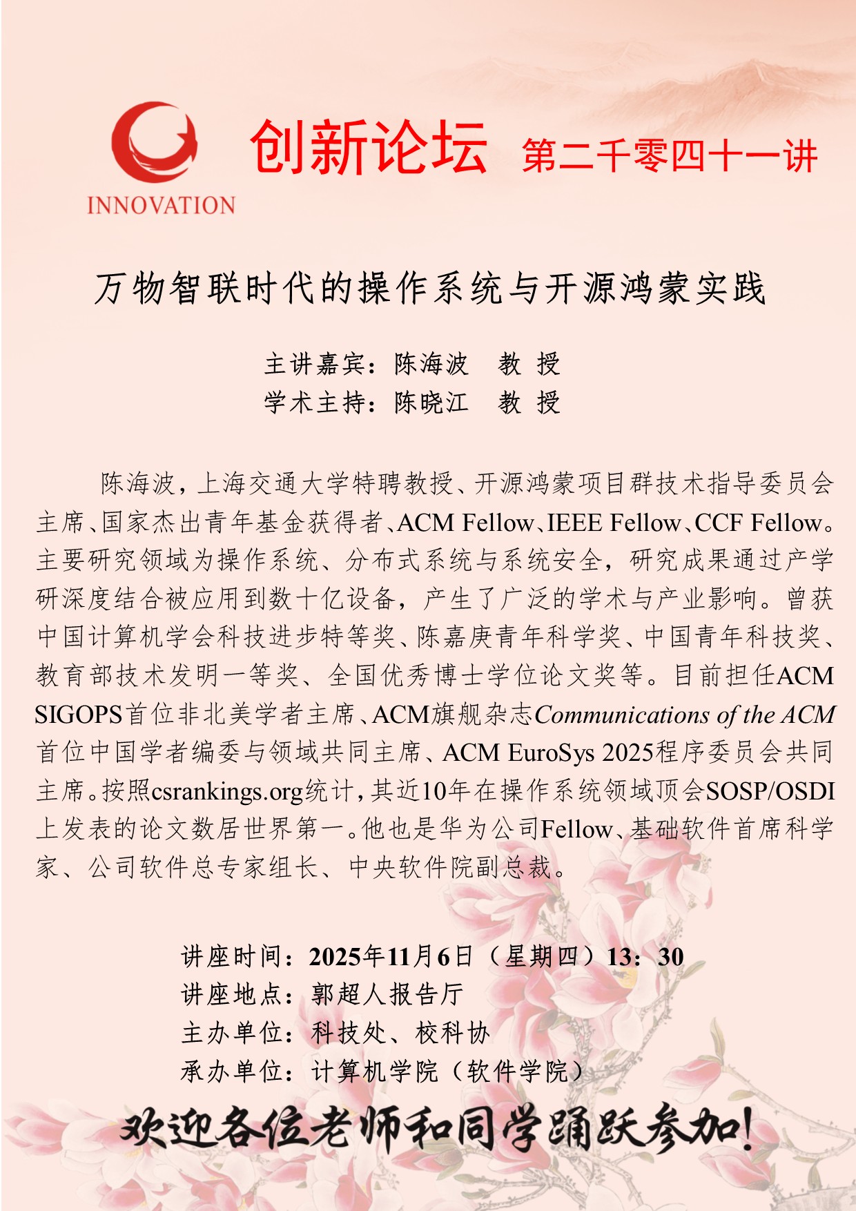 西北大学创新论坛第二千零四十一讲:万物智联时代的操作系统与开源鸿蒙实践