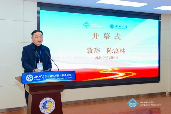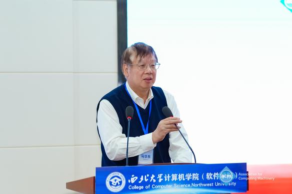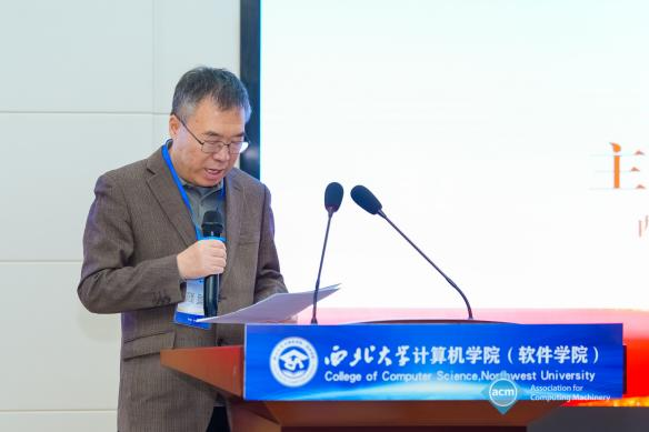 马建峰教授主持开幕环节,介绍了本次会议的举办主旨与核心意义。陈富林教授在致辞中代表学校向与会专家学者表示欢迎,向长期关心支持西北大学建设发展的各界朋友表示感谢。他表示,此次论坛和换届仪式在西北大学举行,为学校进一步加强与国内计算机领域高水平专家学者的交流合作搭建了重要平台。马华东教授在致辞中系统阐述了ACM在信息科学领域的重要影响和学术价值,重点介绍了ACM中国理事会在搭建国内学术交流平台、深化国际学术合作、推动信息科学领域创新发展中的重要作用。