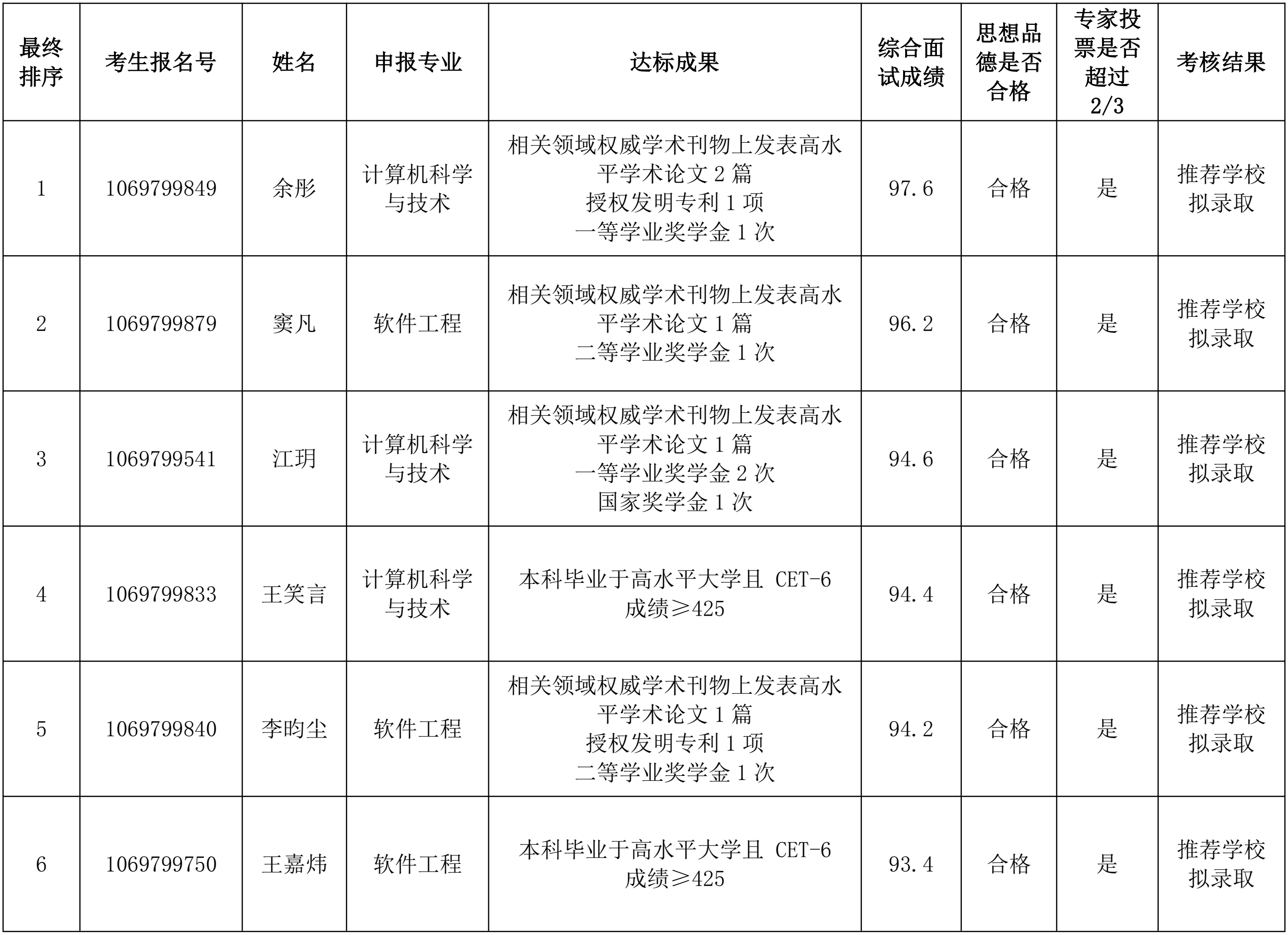按照《西北大学关于做好2026年“硕博连读”研究生选拔工作的通知》相关规定,经学院资格审查、考核小组综合考核并投票表决,余彤等6人获得2/3专家投票推荐。现对我院2026年本次硕博连读研究生综合考核推荐结果公示如下: